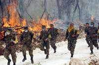 Soldados intentaban extinguir ayer un incendio forestal en la colonia La Antigua, en Cancún, Quintana Roo. Las conflagraciones se han incrementado debido a la vegetación seca que dejó el huracán Wilma