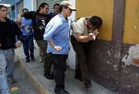 San Salvador Atenco, Méx., 6 de mayo. José Luis Ibáñez, presunto empleado de la Secretaría General de Gobierno del estado de México, fue golpeado, tras ser descubierto cuando fotografiaba a los oradores y grababa los discursos de quienes participaban en la "asamblea nacional" de apoyo al Frente de Pueblos en Defensa de la Tierra (FPDT).