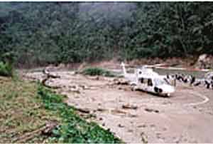 Los helicópteros aterrizaron en el Llano Mazate después de dar algunas vueltas de reconocimiento en el lugar. La bajada no era fácil pues el espacio abierto en el monte era muy reducido. En el pequeño llano ya estaba colocada la sencilla infraestructura que serviría para la liberación del "jaguar de luz", consistente en una puerta de palo de dos metros de alto con dos poleas en el travesaño para que corrieran las reatas que levantarían la puerta de la jaula, la cual se colocaría abajo para tal fin.