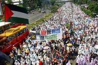 El Partido Justicia Próspera (PKS) convocó a los indonesios para exigir a Occidente, especialmente a Estados Unidos, que termine el bloqueo de la ayuda al gobierno palestino. Sólo en Yakarta, la capital, el PKS reunió a diez mil personas, y a cientos más en otras dos ciudades.