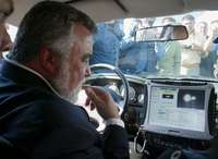 Alejandro Encinas, jefe de Gobierno del Distrito Federal, observa una computadora instalada en una patrulla que registra los autos robados