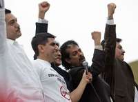 San Luis Potosí, 7 de mayo. "Los Tigres del Norte seguirán apoyando las marchas de los migrantes mexicanos y latinos en Estados Unidos. Así lo hicimos en Los Angeles hace dos domingos. Tuvimos la oportunidad de estar ahí y les cantamos. Nos invitaron las autoridades de la ciudad y las estaciones de radio La Raza y la K Buena. Era un montonal de gente; nos conmovieron", expresó El Tigre Mayor, Jorge Hernández, al término de la primera tanda de un show en esta ciudad.
