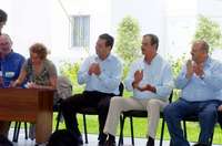 Elba Esther Gordillo, el gobernador de Tamaulipas, Eugenio Javier Hernández Flores, el presidente Vicente Fox y el secretario de Educación, Reyes Tamez, ayer en Altamira