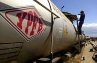 Un trabajador prepara un vagón de diesel que cargará el combustible desde la refinería argentina de Palmasola hasta la ciudad de Santa Cruz de la Sierra, en Bolivia