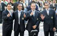A los extremos los arbitros mexicanos mundialistas Armando Archundia y Marco Antonio Rodríguez; al centro los suplentes Francisco Ramírez Díaz y José Luis Camargo Callado