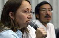 Informe del Centro Pro sobre Atenco. En la gráfica, Luisa Pérez y Edgar Cortez