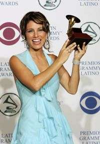 Soraya muestra el Grammy Latino que obtuvo la mejor cantante-compositora en 2004 en Los Angeles