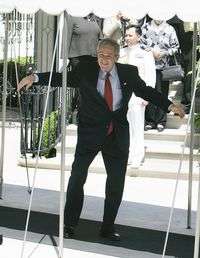 El presidente George W. Bush bromea con sus invitados en la residencia de Campo David, donde celebró el Día de las Madres