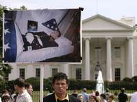 En Washington, encabezados por la pacifista Cindy Sheehan, familiares de militares caídos en Irak comenzaron este sábado una jornada de vigilia frente a la Casa Blanca, en protesta por la guerra del presidente Bush. En la gráfica, Carlos Arredondo con la foto de su hijo
