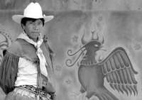 Huichol del pueblo de San Sebastián, municipio de Bolaños, Jalisco. A la derecha otro wixarica, en una zona deforestada en San Andrés Cohamiata
