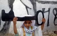 En Eizariya, en los límites de Jerusalén, un niño palestino participa en la celebración de la Nakba, día de luto por el establecimiento de Israel en 1948 en la zona y el desplazamiento de cientos de miles de palestinos