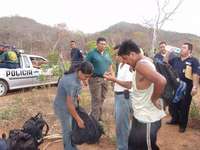 Policías vigilan a indocumentados centroamericanos sobrevivientes del descarrilamiento de un tren de carga en Oaxaca