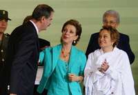 En un acto que congregó, según los organizadores, a 15 mil docentes, quienes se quedaron sin conocer el incremento salarial que recibirán, pero eso sí, fueron testigos del intercambio de elogios entre el Presidente y Gordillo, la ex secretaria general del PRI -nombrada por Fox la "aliada incondicional de la educación"- aprovechó para pedir a su "amigo" un programa de residencias comunitarias para jubilados del magisterio, demanda que de inmediato fue aceptada por el Ejecutivo.