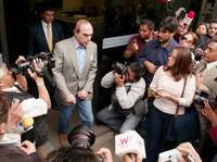 El rey de la mezclilla, a su salida del edificio de la PGR