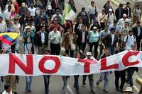 Ecuatorianos provenientes de distintas partes del país marcharon por las calles de Quito para demandar que el gobierno del presidente Alfredo Palacio no firme el TLC con Estados Unidos