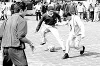 Alumnos de secundaria juegan futbol durante la feria juvenil Por un Mundo sin Adicciones, realizada en la explanada de la delegación Benito Juárez en 2004
