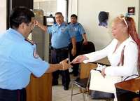 Monterrey, NL, 18 de mayo. Miembros de la asociación civil Unidos Mayra repartieron unos 500 condones entre policías, personal y visitantes al palacio de justicia, donde se ubica el penal de Topo Chico, que según los activistas aloja a más de 300 reos que padecen síndrome de inmunodeficiencia adquirida (sida).