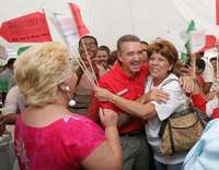Tapachula, Chis., 18 de mayo. En un acto masivo con militantes panistas en Tapachula, el candidato del PAN a la presidencia de la República, Felipe Calderón Hinojosa, aseveró que se sumará "al compromiso de brindar mayor seguridad y de llevar a cabo la reconstrucción de Chiapas", e hizo un recuento de los avances logrados en los cinco años y medio de gobierno foxista.