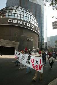 Protesta de ayer frente a la Bolsa Mexicana de Valores para exigir la liberación de los presos de San Salvador Atenco