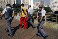 Policías de Sao Paulo conduden a un sospechoso, ayer, durante un patrullaje por el centro de la ciudad brasileña