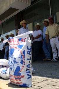 Productores de leche de Durango, Jalisco, Querétaro e Hidalgo efectuaron protestas ayer frente a las delegaciones de la Secretaría de Economía (SE) para quejarse de la entrada al país de leche en polvo y otros productos elaborados a base de lactosueros, que han desplazado el producto nacional.