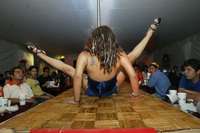 Demostración de table dance, en uno de los pabellones de la expo
