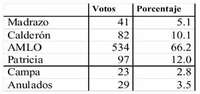 El jueves de la semana pasada se organizó un simulacro electoral en la Escuela Normal Superior. La jornada estuvo supervisada por los alumnos de educación cívica de cuarto y sexto semestres, bajo la coordinación del profesor José T. Cardoza Olivas. Estos son los resultados: