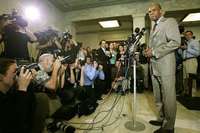 William Jefferson, representante por el estado de Louisiana, en una rueda de prensa en el Capitolio, ayer en Washington, luego del cateo que la FBI realizó en su casa, donde encontró 90 mil dólares en el congelador