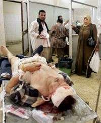 Un iraquí herido ayer en el estallido de un coche bomba en Bagdad, espera atención médica en el hospital Yarmouk de la capital de Irak