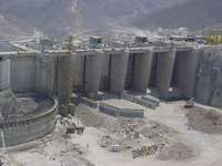 Cortina de la presa hidroeléctrica El Cajón, donde aún laboran 3 mil 500 trabajadores