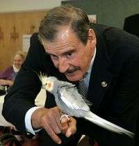 Ampliar la imagen El presidente Vicente Fox sostiene un ave de un residente de un centro de salud comunitario del mar en Seattle, lugar que visitó en su gira por Estados Unidos FOTOAp