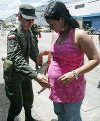 Una policía revisa en Medellín a una colombiana embarazada en busca de armas