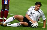 Ginebra, Suiza, 25 de mayo. El capitán de la selección de futbol de Alemania, Michael Ballack, tuvo que abandonar el partido de preparación que disputaba contra un equipo junior del Servette Ginebra al lesionarse el tobillo derecho.