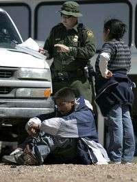 Un agente de la Patrulla Fronteriza con dos indocumentados, ayer cerca de Arivaca, Arizona