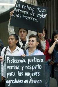 Unas 30 feministas exigieron castigo a los policías agresores de las mujeres detenidas en Atenco, y demandaron la renuncia del comisionado del Sistema Nacional de Seguridad Pública, Miguel Angel Yunes, a quien atribuyeron responsabilidad de las "violaciones" contra las mujeres.