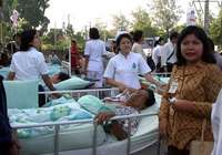 Enfermeras atienden a pacientes en el patio del hospital en Yogyakarta