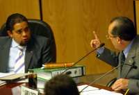 Los consejeros del Instituto Electoral del DF Gustavo Anzaldo Hernández e Isidro Cisneros, presidente del organismo, durante la sesión del pasado 24 de mayo
