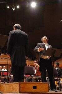 El contratenor Brian Asawa, en un momento de su actuación. De espaldas, el director John DeMain