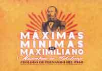 "UN GOBIERNO que no quiere ni puede oír la voz de sus gobernados es un gobierno carcomido que se precipita a su próxima ruina". Lo dijo, o al menos lo escribió, Maximiliano de Habsburgo, ''el emperador sin imperio", como lo llama el escritor Fernando del Paso en el prólogo de este pequeño volumen que reúne todos los aforismos (165) de autoría del archiduque que llegó a México en 1864 para ser fusilado tres años después en el Cerro de las Campanas. ''Cabe preguntarse: ¿cumplió Maximiliano con sus máximas? ¿Les fue fiel? ¿Ajustó sus obras a ella? Podemos afirmar que unas veces sí y otras no", sentencia Del Paso. Máximas mínimas de Maximiliano, prólogo de Fernando del Paso y epílogo de Luigi Amara. Ediciones Tumbona, 128 pp. Precio de lista: 180 pesos.