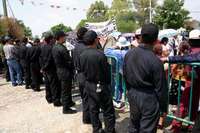 Los inconformes amagaron con ingresar a la comunidad para montar un campamento en plaza principal del poblado, pero un centenar de elementos del Estado Mayor Presidencial les prohibió el acceso al caserío, con el argumento de que "por seguridad y porque la gente de aquí nos lo pidió, no los podemos dejar pasar".