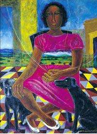 Mujer con globos y Filiberto y Camila, 1999, óleo de Rodolfo Morales, incluida en la exposición subtitulada Maestro de los sueños, que mañana se abrirá en el recinto de Reforma y Gandhi