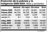 En una economía estancada, la opinión pública recibió el siguiente anuncio de la Sedeso sobre el tema con incredulidad total: con base en la ENIGH2002 y usando el método truncado del CTMP, las tres pobrezas definidas habían bajado entre 2000 y 2002, no sólo en porcentajes, sino incluso en número de personas. Se había producido otro milagro: el ingreso per cápita de los deciles (décimas partes ordenadas de menor a mayor valor) I a IX aumentaron mientras sufría una fuerte baja el ingreso del decil X, disminuyendo la desigualdad en la distribución del ingreso. El primer milagro se volvió a repetir entre 2002 y 2004, y aunque la desigualdad permaneció casi igual, el milagro 2000-2004 es doble: disminuyen tanto la desigualdad como la pobreza. La "de patrimonio" de 52.5 a 49 millones (de 53.7 por ciento a 47 por ciento de la población) y disminuciones aún más rápidas en la pobreza alimentaria (24.2 por ciento a 17.3 por ciento) y en la de capacidades (31.9 por ciento a 24.6 por ciento). Pero el milagro anunciado es casi sólo rural: en las ciudades los pobres de patrimonio aumentan en 400 mil, aunque bajan un poco en términos porcentuales.