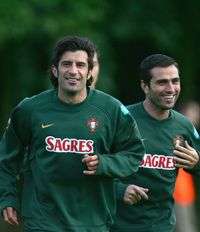 El portugués Figo (izquierda) se dispone a enfrentar su último Mundial
