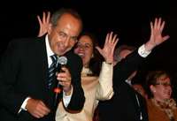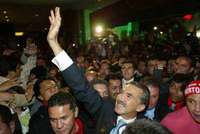 Ampliar la imagen Felipe Calderón Hinojosa, candidato del Partido Acción Nacional, acudió a la sede central del blanquiazul para festejar con sus seguidores Foto: José Antonio López