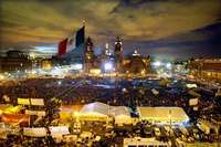 Ampliar la imagen Miles de simpatizantes festejaron con Andrés Manuel López Obrador, en el Zócalo de la ciudad de México, la participación del tabasqueño en el debate entre presidenciables Foto: Marco Peláez