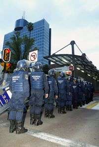 Policías resguardan el WTC, en avenida Insurgentes, por donde pasaron universitarios queexigían la liberación de detenidos en Atenco