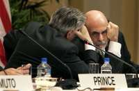 Gary Duncan, de The Times (5/6/06), describe la aceptación del hombre oro como "masoquista", quien hace tres meses había declinado el puesto propuesto por el jefe de gabinete bushiano Joshua Bolten, otro ejecutivo de Goldman Sachs. Más que intentar salvar las finanzas sin redención de EU, ¿no intentará más bien el hombre oro rescatar de los avernos a su empresa Goldman Sachs?