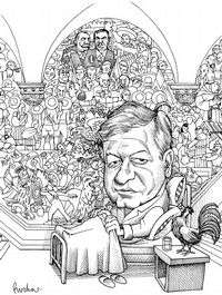 Cartón de Gonzalo Rocha, caricaturista de La Jornada, incluido en la exposición del IAGO