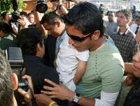 Guadalajara, Jal., 8 de junio. El portero de la selección mexicana, Oswaldo Sánchez, llegó al aeropuerto internacional Miguel Hidalgo de esta ciudad a las 18:15 horas, después de viajar más de 15 horas para asistir al funeral de su padre, Felipe de Jesús Sánchez.