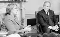 Washington, 8 de junio. El presidente de Estados Unidos, George W. Bush, recibió hoy por primera vez en la Casa Blanca a su homóloga chilena, Michelle Bachelet, ante quien ofreció mantener "las buenas relaciones" entre los dos países y trabajar ambos en favor del fortalecimiento de la democracia en América Latina.